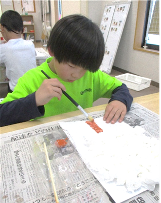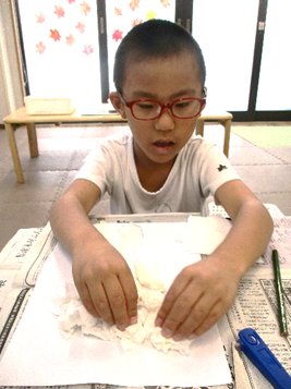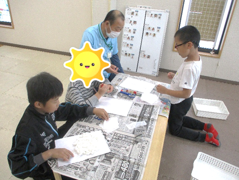 形や色の数が書いてある紙を見ながら、みんなで協力して行っていました。