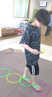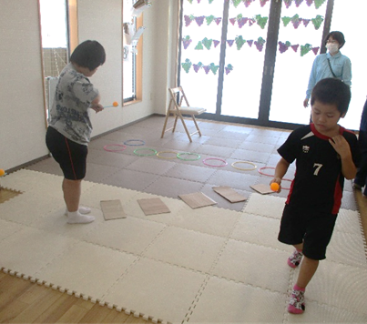 投稿日: 2025年9月8日2025年9月24日 投稿者: oakleaves室内ゲーム スプーンにのせた卓球たっきゅうの球たまを落おとさないように歩あるき、スタートからゴールまでのタイムを競きそいました。 集中しゅうちゅうしています フープも踏ふまないように。