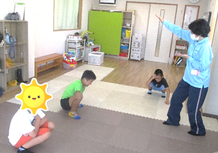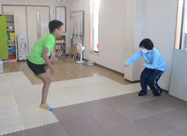 投稿日: 2025年9月9日2025年9月24日 投稿者: oakleaves運動 職員しょくいんの動うごきや言葉ことばを聞きいて、素早すばやく動うごく、反射神経はんしゃしんけいゲームを行おこないました。 集中しゅうちゅうして聞ききます 手裏剣しゅりけんが・・・上うえにとんできた!小ちいさくなって避さけます。 手裏剣しゅりけんが…下したにきた!ジャンプだ!