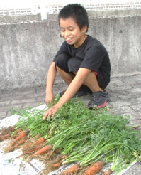 投稿日: 2025年9月18日2025年9月27日 投稿者: oakleaves園芸 にんじんの収穫しゅうかくを行おこないました。 「大おおきいにんじんだ!」「今度こんどは少すこし細ほそいにんじんだね!」と大おおきさや形かたちを比くらべながら、収穫しゅうかくを楽たのしんでいました。 収穫しゅうかくしたにんじんはカレーの調理実習ちょうりじっしゅうで使つかいます♪ まずは抜ぬき方かたを確認かくにん 葉はっぱを束たばにして抜ぬきます 抜ぬけるかな? やった!抜ぬけたよ! 抜ぬいたにんじんを並ならべています