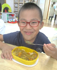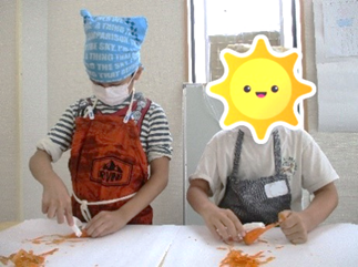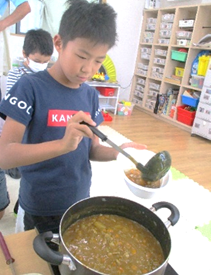 投稿日: 2025年9月20日2025年9月27日 投稿者: oakleaves調理実習 収穫しゅうかくしたにんじんを使つかって、カレーを作つくりました。 各材料かくざいりょうを切きった後あと、野菜やさいやお肉にくを炒いため、いい匂においがしてくると、「早はやく食たべたいな」と完成かんせいが待まち遠どおしい様子ようすでした。 自分じぶんたちで育そだてたにんじんを使つかって作つくったカレーは格別かくべつにおいしかったようです♪ ピーラーを使つかって皮かわむき ピーラーにだんだん慣なれてきました 丁寧ていねいに切きっています 真剣しんけんな表情ひょうじょうで 「おいしくなーれ!」 完成♪かんせい とってもおいしい♪