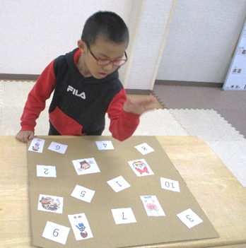投稿日: 2025年11月13日2025年11月25日 投稿者: oakleaves室内ゲーム 数字すうじを順じゅんにタッチするゲームを行おこないました。 回数かいすうを重かさねるごとに素早すばやくタッチできていました。 数字すうじを声こえに出だしながら行おこなっています 7はどこかな・・・ 5があった!次つぎは・・・ 1~10までは、11秒びょうが最高記録さいこうきろく! 1~20にも挑戦ちょうせん!31秒びょうだったよ!