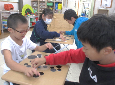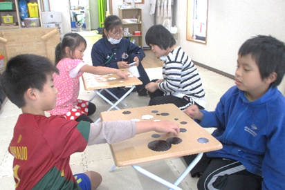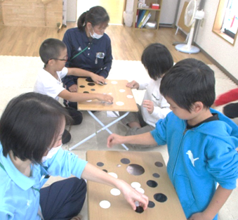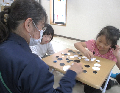しろくろのカードをならべて「ひっくりかえしゲーム」をおこないました。