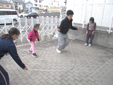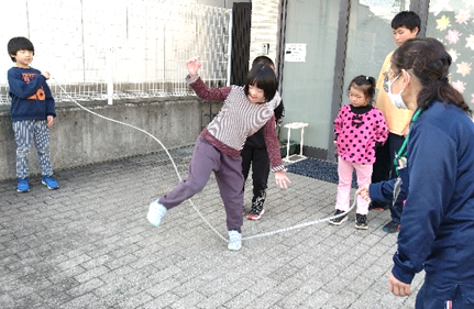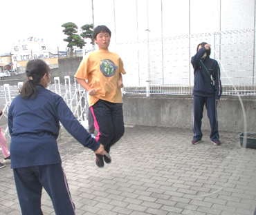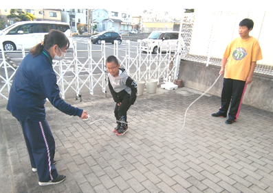長縄を行い、いろいろなジャンプに挑戦しました。