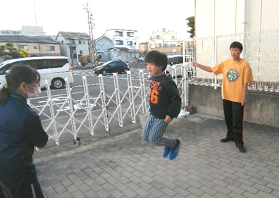 連続ジャンプでは、たくさん跳べるように縄をよく見て一生懸命頑張っていました。