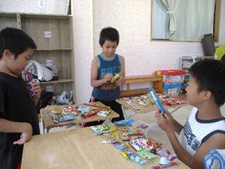 模擬店で焼きそばやプリンを購入し、詰め放題やつかみ取り、缶バッチ作りを楽しみました♪