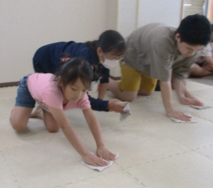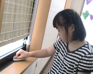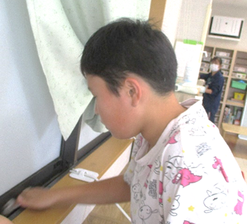 窓やドアのサッシ、マットの拭き掃除を行い、丁寧に取り組むことができていました。