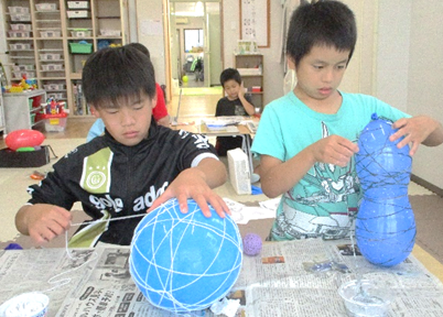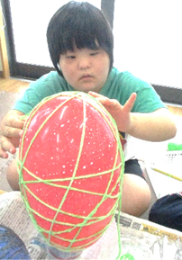 ハロウィンの仮装衣装を作るか、風船に糸を巻き付けてできるコットンボールを作るかご自分で選んでいただき、取り掛かりました。