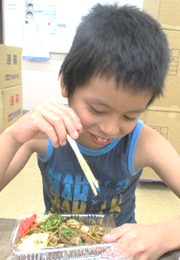 各材料を切った後、野菜やお肉を炒め、いい匂いがしてくると、「早く食べたいな」と完成が待ち遠しい様子でした。