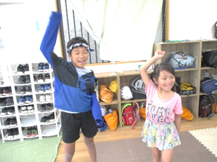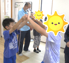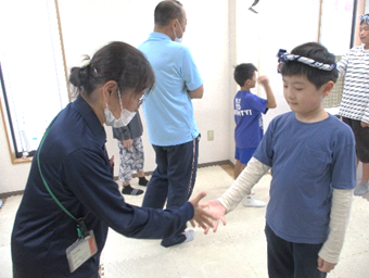 ハチマキをバトン代わりにして、じゃんけんリレーをチームに分かれて行いました。