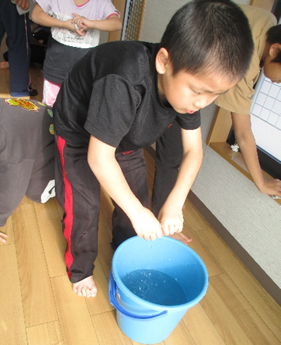 色々な物を使って送り競争を 行いました。