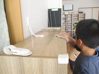 手作りのすごろくのマス作りを行っています。